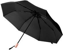 Manuální, větrudodolný skládací deštník s 8 panely ve stejně barevném pouzdře. S kovovým rámem, sklolaminátová žebra a dřevěná rukojeť. 190T RPET pongee, s etiketou s označením RPET.