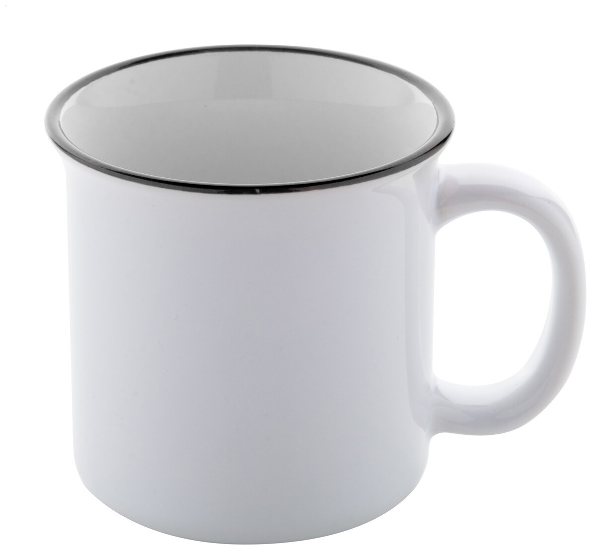 Retro keramický hrnek pro sublimační potisk s barevným okrajem, 300 ml, v dárkové krabičce.