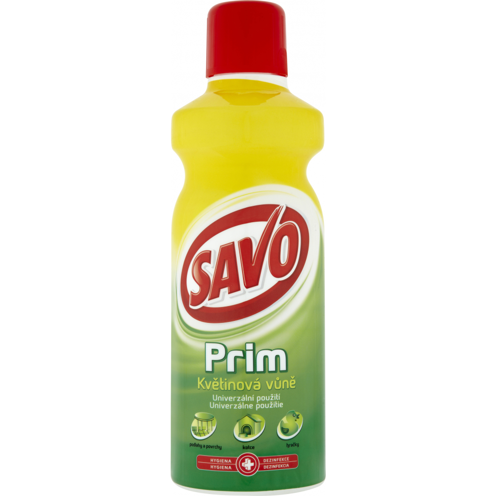 Savo je značka čisticích prostředků a dezinfekčních přípravků. Savo Prim je výborný pomocník pro zachování Vašeho domova a okolí čistého a bezpečného. Spolehlivě likviduje bakterie, viry, řasy a nižší houby. Účinný na dezinfekci povrchů. Savo Prim je určený k dezinfekci vody a povrchů v domácnosti a už více než 30 let se těší velké přízni spotřebitelů na českém trhu. Jeho použití je všestranné. Spolehlivě odstraní nebezpečné viry a bakterie, které zamořují povrchy ve vaší domácnosti a vodu ve studních a bazénech. Spolehlivost prostředku garantuje také jeho více než 30-ti leté používání v institucích a ve zdravotnictví k dezinfekci povrchů a podlah.