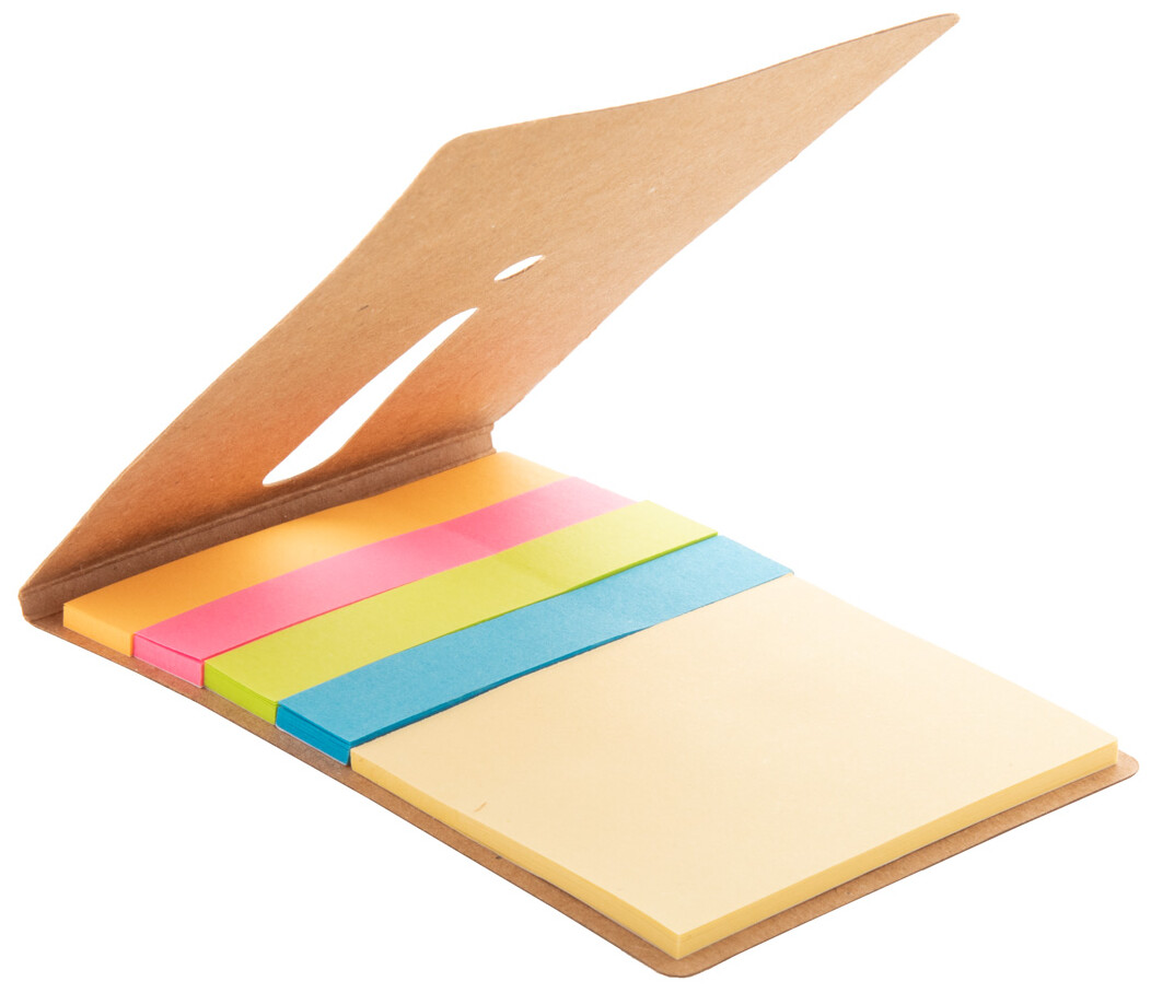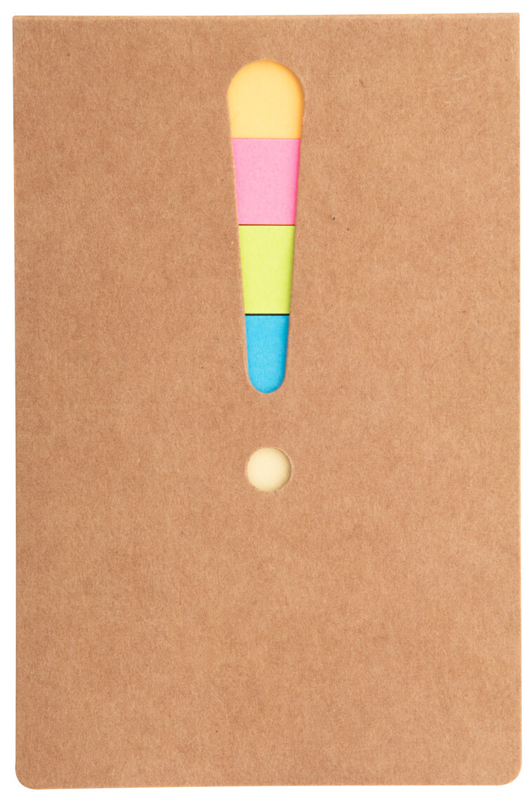 Samolepící bloček s 25 velkými a 100 malými samolepícími lístky (ve 4 různých barvách). S výřezem vykřičníku na deskách.