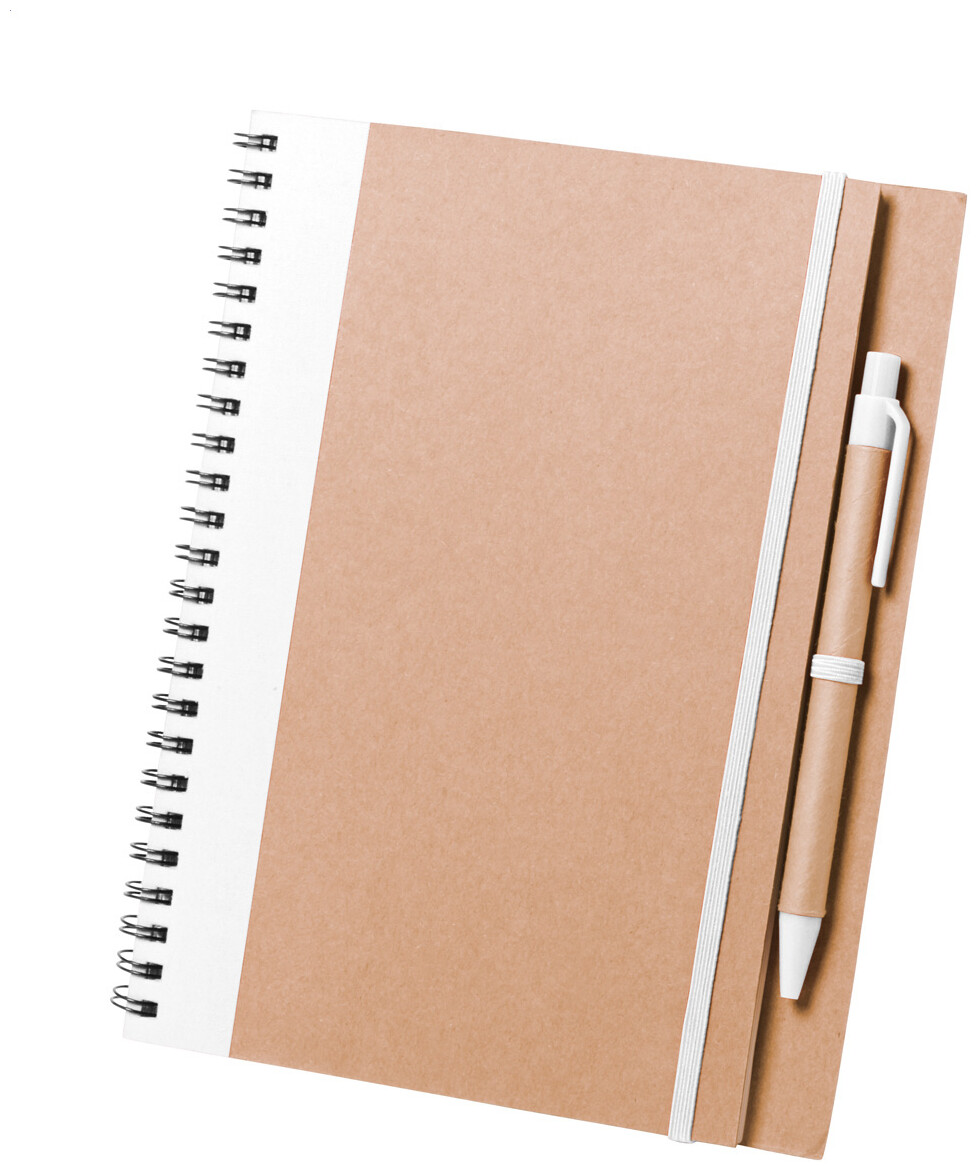 Nelinkovaný blok z recyklovaného papíru, se 60 listy a s papírovým kuličkovým perem.