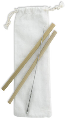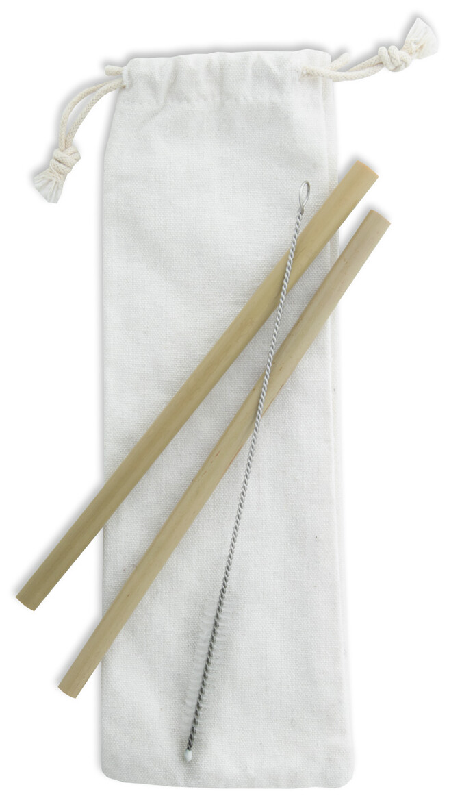 Sada 2 opakovaně použitelných přírodních bambusových brček a čistícího kartáčku v bavlněném pouzdře. Průměr a povrch brček se může lišit.