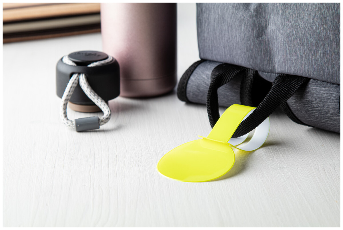 Reflexní kulatá visačka na zavazadlo. Pouze pro propagační účely, se produkt nekvalifikuje jako osobní ochranný prostředek.