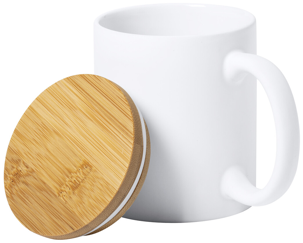Keramický hrnek v matném provedení s bambusovým víčkem, 370 ml. V krabici z kraftového papíru.