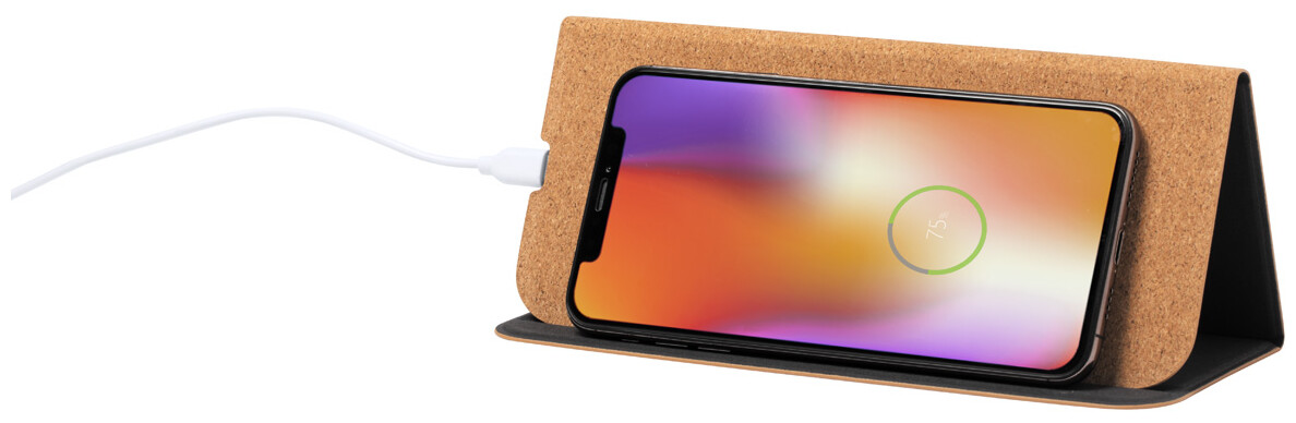 Podložka pod myš z přírodního korku s vestavěnou bezdrátovou nabíječkou (5W) a integrovaným držákem na mobilní telefon. Včetně nabíjecího kabelu USB-C. V krabičce z kraftového papíru.