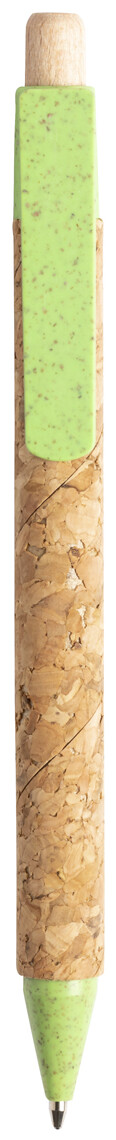 Ekologické plastové kuličkové pero ze slámy s přírodním korkem na těle a modrou náplní.