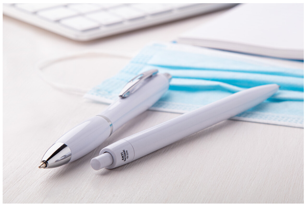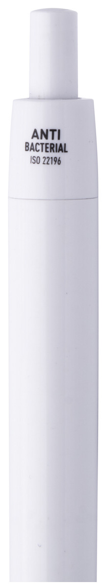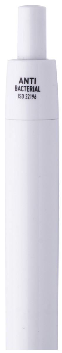 Plastové kuličkové pero s antibakteriálním tělem. Obsahuje přísadu nano stříbra, která zabraňuje růstu bakterií na těle pera. Se stiskacím mechanismem a modrou náplní. V souladu s ISO 22196: 2011.