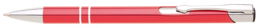 ORIN je velmi oblíbená hliníková reklamní tužka. Lesklé, červené tělo se dvěma stříbrnými proužky a chromovými doplňky. Velkoobsahová modrá náplň.