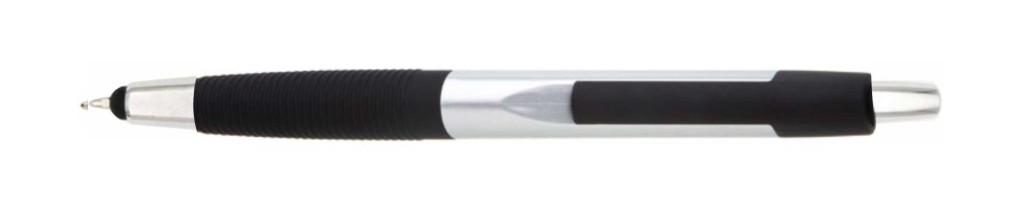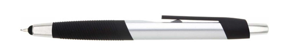 Plastové, kuličkové pero stříbrné s černým, gumovým a vroubkovaným gripem a stříbrnými doplňky. Na spodní části tužky je umístěn touch pro dotykové displeje. Náplň X 20, modře píšící.