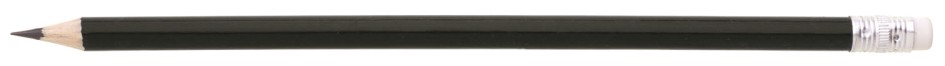 Kulatá, černá, dřevěná, grafitová tužka HB s bílou gumou, hrocená.