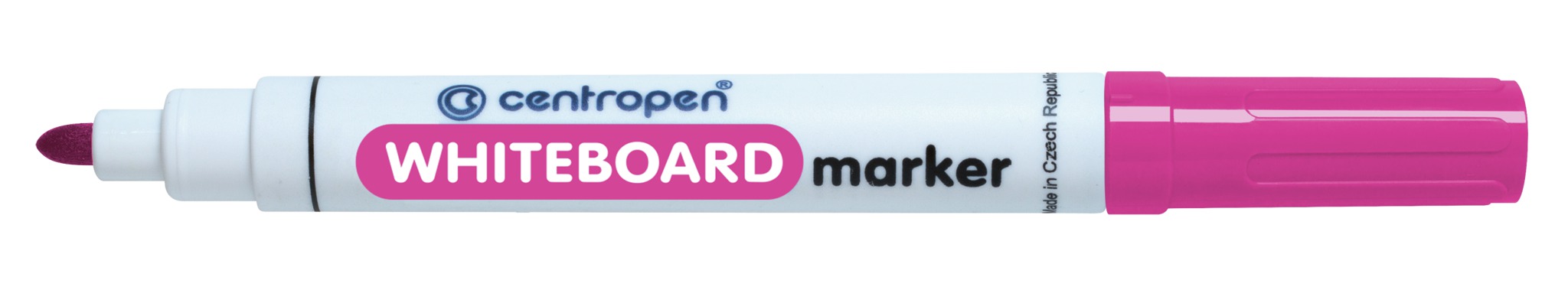 Značkovač s válcovým hrotem určený na bílé smaltované tabule a na neporézní povrchy. Za sucha stíratelný, světlostálý. Šířka stopy 2,5 mm.