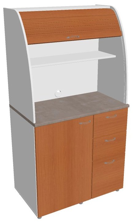 Dvě police ve vrchní části kuchyňky poskytují dostatečnou kapacitu pro vaše skleničky, hrnky či talíře. Na pracovní desku můžete umístit např. kávovar a kabelovou průchodkou v zadní části vyvedete přívodní kabel z prostoru kuchyňky.
