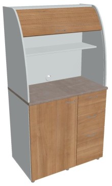 Dvě police ve vrchní části kuchyňky poskytují dostatečnou kapacitu pro vaše skleničky, hrnky či talíře. Na pracovní desku můžete umístit např. kávovar a kabelovou průchodkou v zadní části vyvedete přívodní kabel z prostoru kuchyňky.
