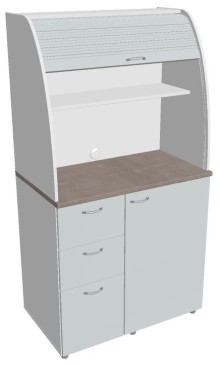 Dvě police ve vrchní části kuchyňky poskytují dostatečnou kapacitu pro vaše skleničky, hrnky či talíře. Na pracovní desku můžete umístit např. kávovar a kabelovou průchodkou v zadní části vyvedete přívodní kabel z prostoru kuchyňky.