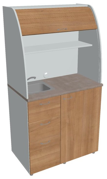 V provedení se dřezem je hloubka dvou vrchních zásuvek zkrácena právě z důvodu umístění dřezu.