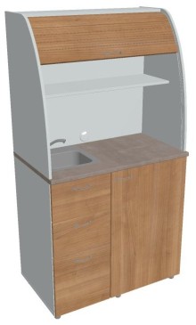 Vedle spodní velké skříňky jsou umístěny 3 zásuvky, do kterých můžete uložit lžičky, ubrousky, čistící prostředky a pod.