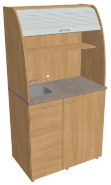 Vedle spodní velké skříňky jsou umístěny 3 zásuvky, do kterých můžete uložit lžičky, ubrousky, čistící prostředky a pod.