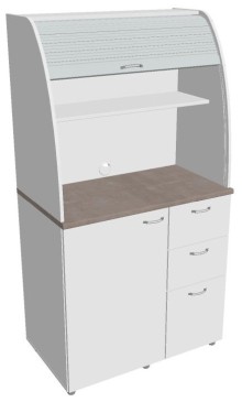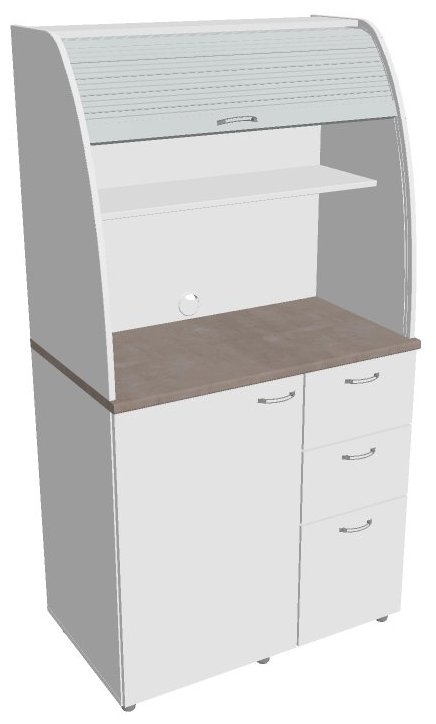 Dvě police ve vrchní části kuchyňky poskytují dostatečnou kapacitu pro vaše skleničky, hrnky či talíře. Na pracovní desku můžete umístit např. kávovar a kabelovou průchodkou v zadní části vyvedete přívodní kabel z prostoru kuchyňky.