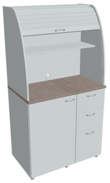 Dvě police ve vrchní části kuchyňky poskytují dostatečnou kapacitu pro vaše skleničky, hrnky či talíře. Na pracovní desku můžete umístit např. kávovar a kabelovou průchodkou v zadní části vyvedete přívodní kabel z prostoru kuchyňky.