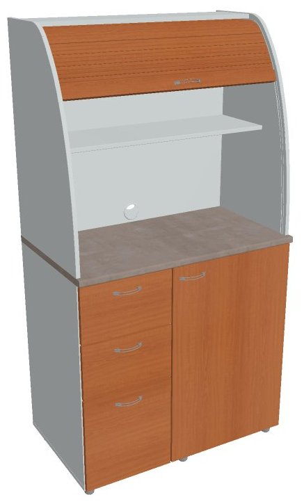 Dvě police ve vrchní části kuchyňky poskytují dostatečnou kapacitu pro vaše skleničky, hrnky či talíře. Na pracovní desku můžete umístit např. kávovar a kabelovou průchodkou v zadní části vyvedete přívodní kabel z prostoru kuchyňky.