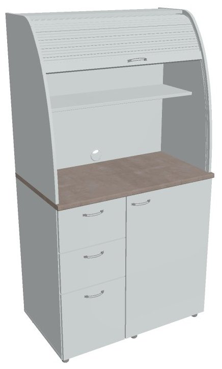 Dvě police ve vrchní části kuchyňky poskytují dostatečnou kapacitu pro vaše skleničky, hrnky či talíře. Na pracovní desku můžete umístit např. kávovar a kabelovou průchodkou v zadní části vyvedete přívodní kabel z prostoru kuchyňky.