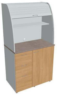 Dvě police ve vrchní části kuchyňky poskytují dostatečnou kapacitu pro vaše skleničky, hrnky či talíře. Na pracovní desku můžete umístit např. kávovar a kabelovou průchodkou v zadní části vyvedete přívodní kabel z prostoru kuchyňky.