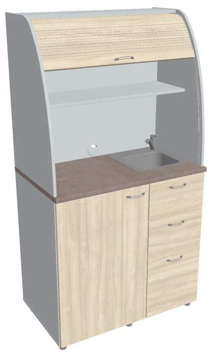 V provedení se dřezem je hloubka dvou vrchních zásuvek zkrácena právě z důvodu umístění dřezu