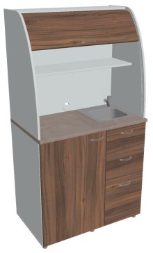 Dvě police ve vrchní části kuchyňky poskytují dostatečnou kapacitu pro vaše skleničky, hrnky či talíře. Na pracovní desku můžete umístit např. kávovar a kabelovou průchodkou v zadní části vyvedete přívodní kabel z prostoru kuchyňky.