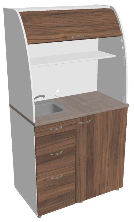 V provedení se dřezem je hloubka dvou vrchních zásuvek zkrácena právě z důvodu umístění dřezu