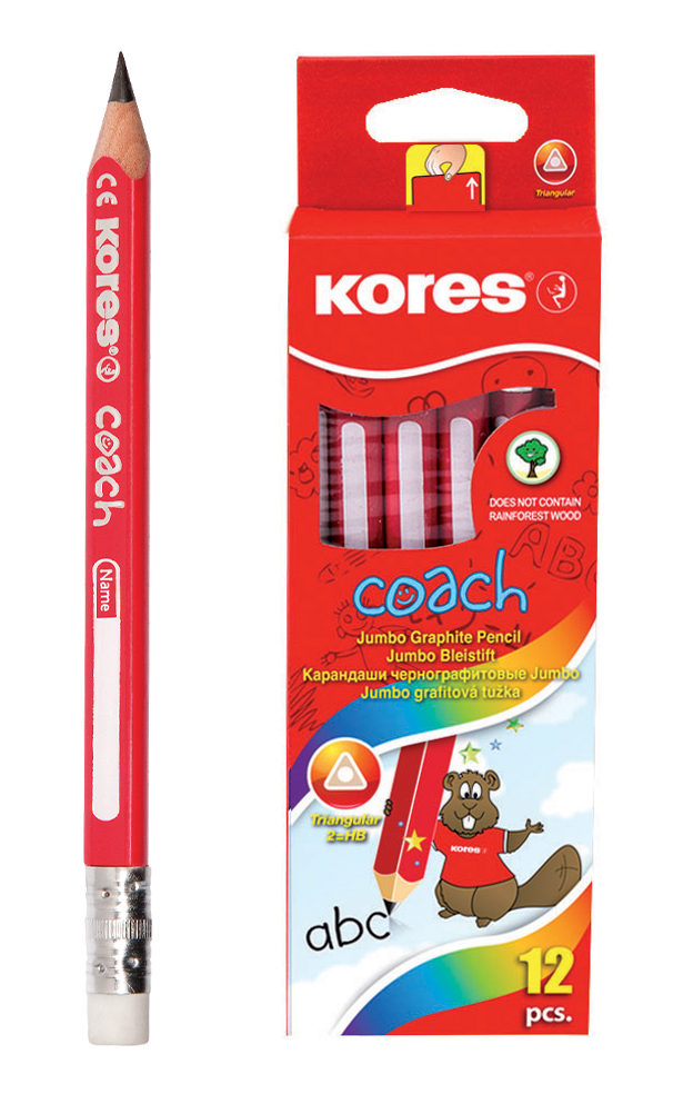Grafitová tužka v Jumbo velikosti se speciální tuhou pro jemné psaní. ¾ délka: ideální pro malé předškoláky a výuku psaní. Tužka je vyrobena z vysoce kvalitního dřeva pro snadné ořezávání. Trojhranný ergonomický tvar pro snadné psaní. Tuha o průměru 5 mm. S bílou pryží.