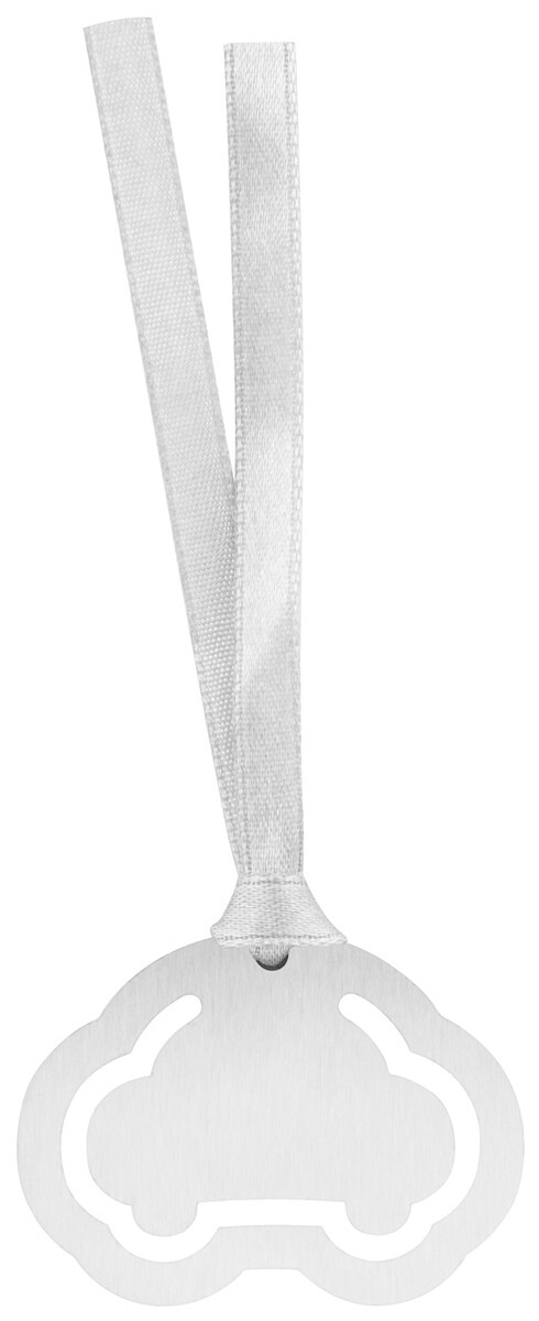 Záložka do knihy z nerez oceli se stříbrnou stužkou.