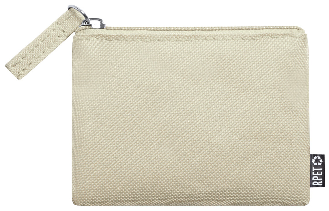 Peněženka na zip ze 600D RPET polyesteru, s etiketou s označením RPET.