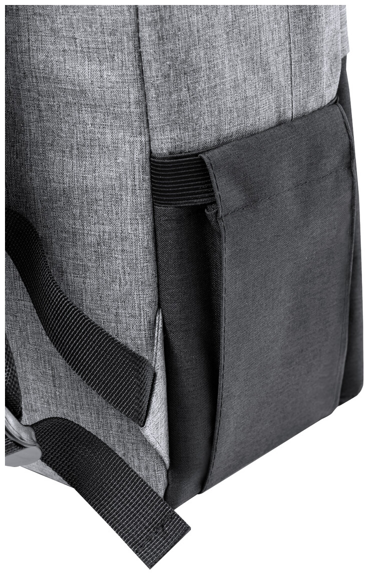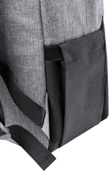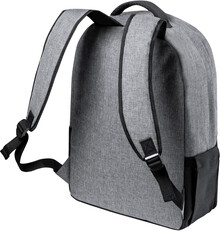 Dvoubarevný batoh RPET s hlavní kapsou na zip, polstrovanou přihrádkou na notebook (15 ") a tablet (10"), postranními kapsami, polstrovanými zády a ramenními popruhy. 600D RPET polyester.