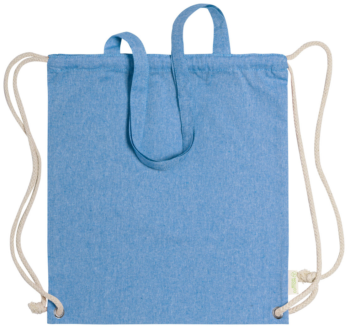 Vak na stahování šňůrkou z recyklované bavlny se silnými pletenými šňůrami a dlouhými uchy. Lze jej také použít jako nákupní tašku. 100% recyklovaná bavlna, 140 g/m2.