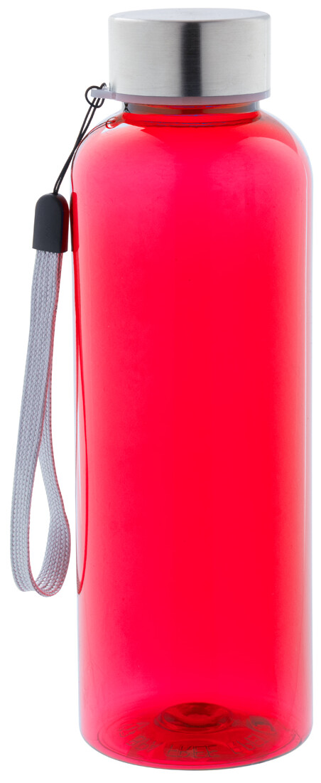 RPET láhev s nerezovým uzávěrem a popruhem, 500 ml. Bez BPA. Nevhodné pro sycené nápoje.