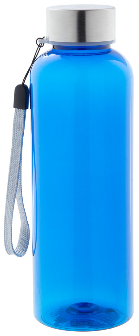 RPET láhev s nerezovým uzávěrem a popruhem, 500 ml. Bez BPA. Nevhodné pro sycené nápoje.