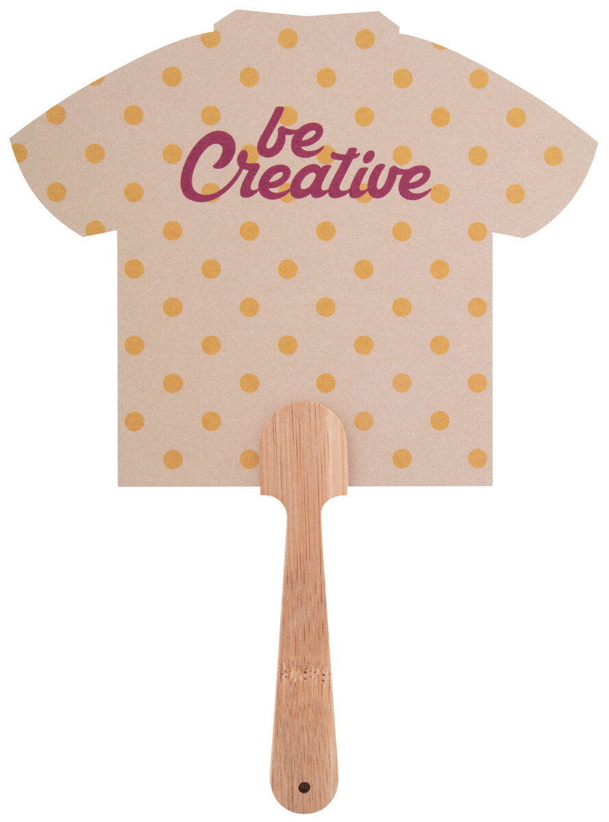 Vějíř vyrobený na zakázku s bambusovou rukojetí a kraftovým papírem. Cena zahrnuje digitální tisk na obou stranách, nezahrnuje tiskovou přípravu. Min. mn.: 100 ks.