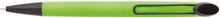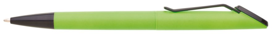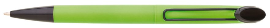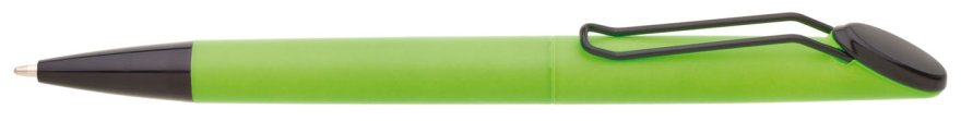 Plastová otočná propiska ARESTA v neonově zelené barvě s černou špičkou a černým kovovým klipem. Na držák klipu je možné umístit epoxy samolepku.Náplň velkoobsahová, modře píšící.