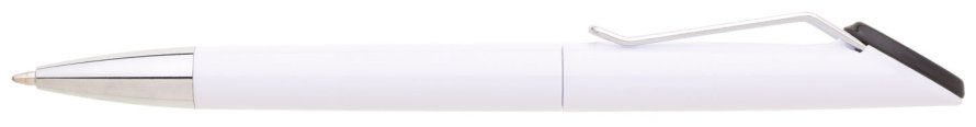 Plastová bílá otočná propiska VERENA s chromovou špičkou a chromovým klipem. Držák klipu je černý a je možné na něj umístit epoxy samolepku. Náplň velkoobsahová, modře píšící.
