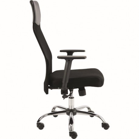 Velmi oblíbená kancelářská židle s výškově stavitelnými područkami a synchro mechanikou. Vysoký síťovaný opěrák s podhlavníkem je v horní části potažen černou koženkou, sedák je opatřen prodyšnou černou látkou.