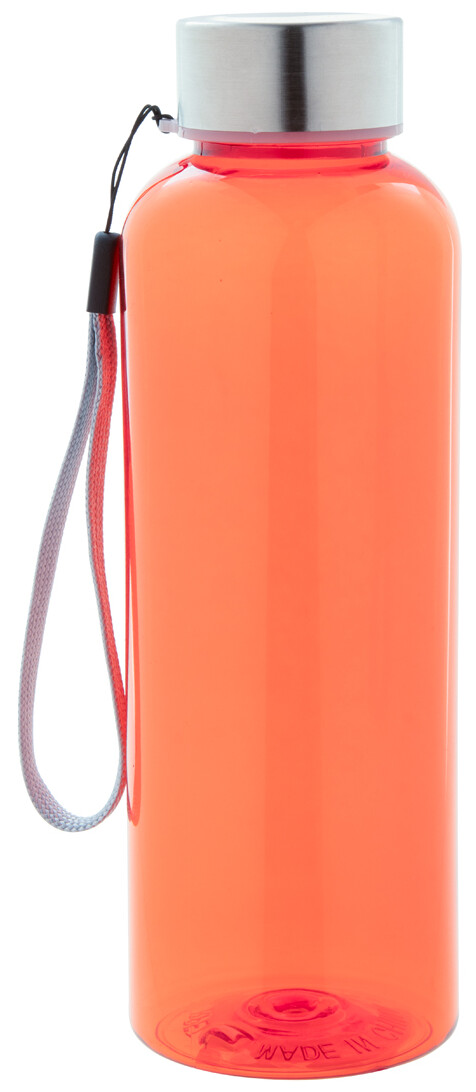 RPET láhev s nerezovým uzávěrem a popruhem, 500 ml. Bez BPA. Nevhodné pro sycené nápoje.
