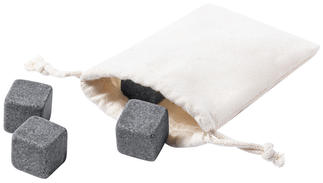 Sada 4 ks opakovaně použitelných kamenných kostek na led v bavlněném sáčku.