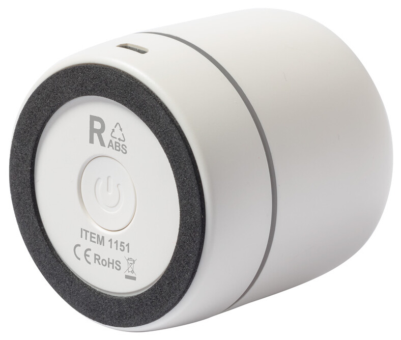 Bezdrátový reproduktor z recyklovaného ABS s funkcí hands-free volání a vestavěnou dobíjecí baterií. Včetně nabíjecího kabelu USB.