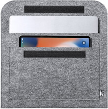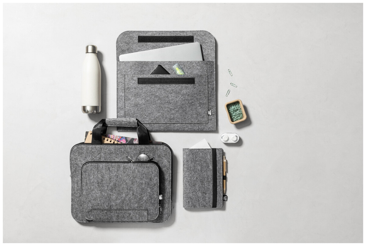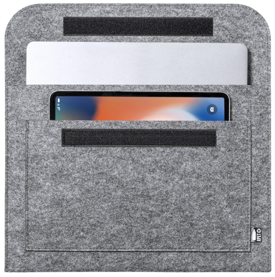 Pouzdro z RPET plsti na laptop s přední kapsou a zapínáním na suchý zip. S výrazným štítkem RPET.