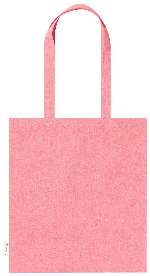 Opakovaně použitelná nákupní taška ze 100% recyklované bavlny s dlouhými uchy a výrazným štítkem z recyklované bavlny, 140 g/m2.