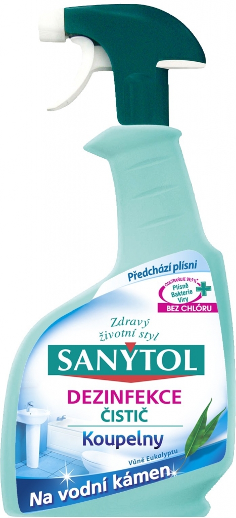 Vlhkost podporuje růst bakterií, hub a virů. Použití standardního dezinfekčního přípravku se silným účinkem proti vodnímu kameni je jediný způsob jak účinně zabránit šíření nežádoucích mikroorganismů, tvorbě plísní a vodního kamene. Sanytol koueplny bez chlóru zaručuje perfektní hygienu a odstraňuje 99,9%* mikroorganismů. Jeho vysoce výkonné složení, snadno odstraňuje plak a nanesené stopy mýdla.