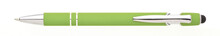 Propiska s touch koncem, měkkým pogumovaným soft povrchem ve světle zelené barvě a stříbrnými doplňky včetně dvou ozdobných kroužků. (NATIO)