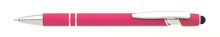 Propiska s touch koncem, měkkým pogumovaným soft povrchem ve růžové barvě a stříbrnými doplňky včetně dvou ozdobných kroužků. (NATIO)