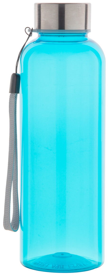 RPET láhev s nerezovým uzávěrem a popruhem, 500 ml. Bez BPA. Nevhodné pro sycené nápoje.