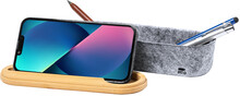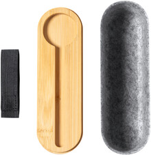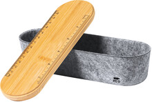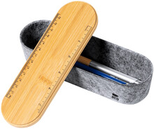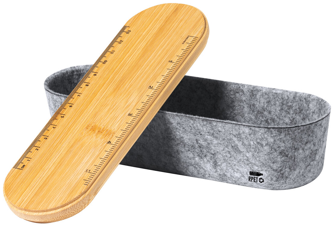 RPET poudro na pera s bambusovým víčkem a elastickým páskem. S pravítkem a integrovaným držákem mobilního telefonu.